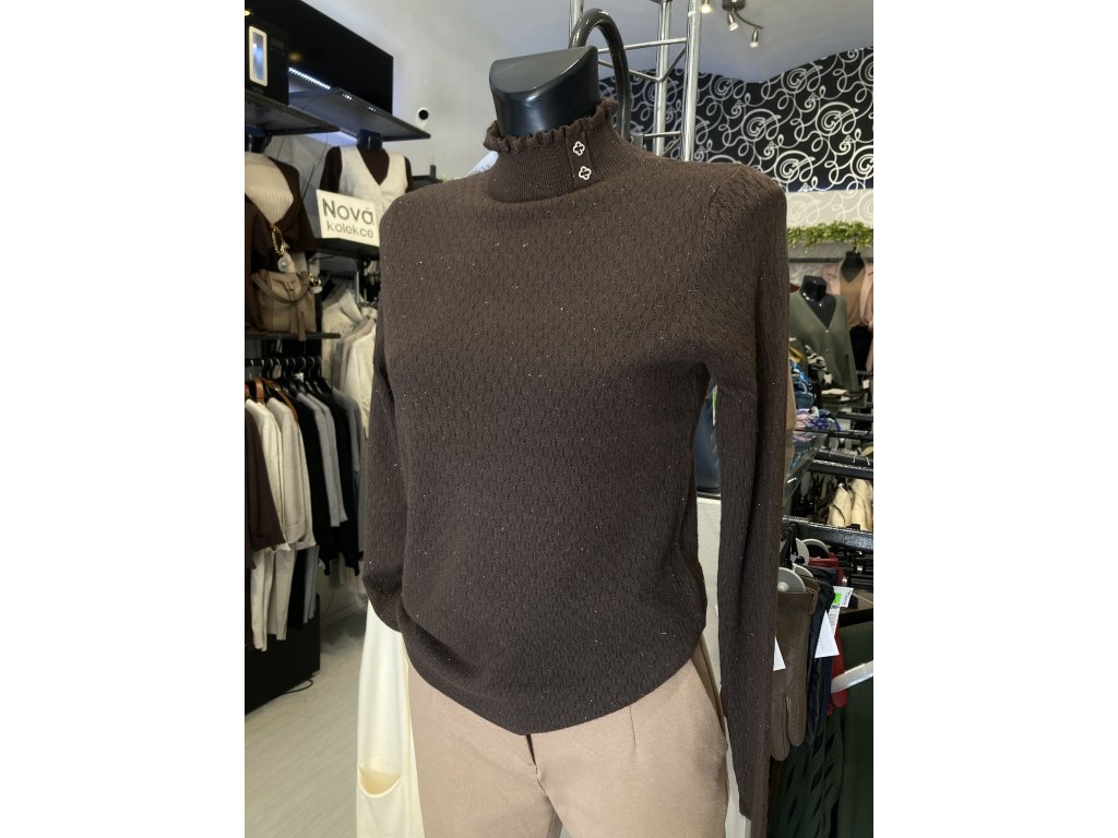 Hebký svetřík v béžové barvě s jemnou lurexovou nitkou.