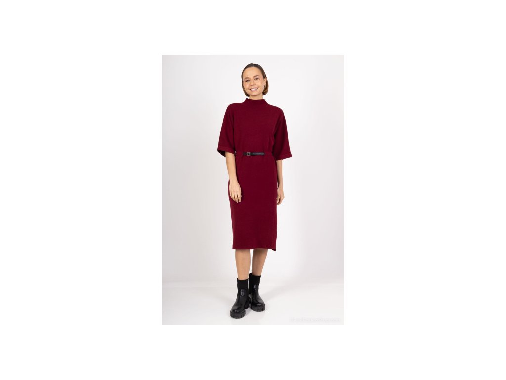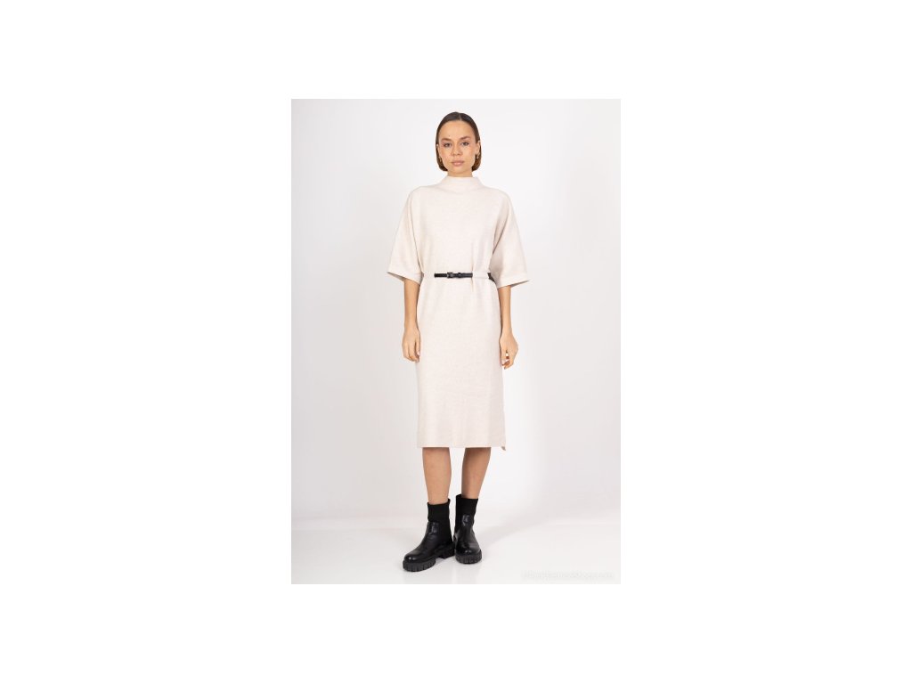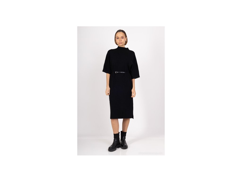 Elegantní šaty úpletové s krátkým rukávem. Šaty jsou v MIDI délce, doplněny syntetickým černým páskem.