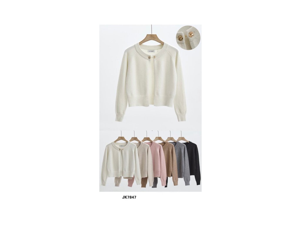 Elegantní úpletový krátký kardigan. Svetřík má zapínání u krku na knoflík.