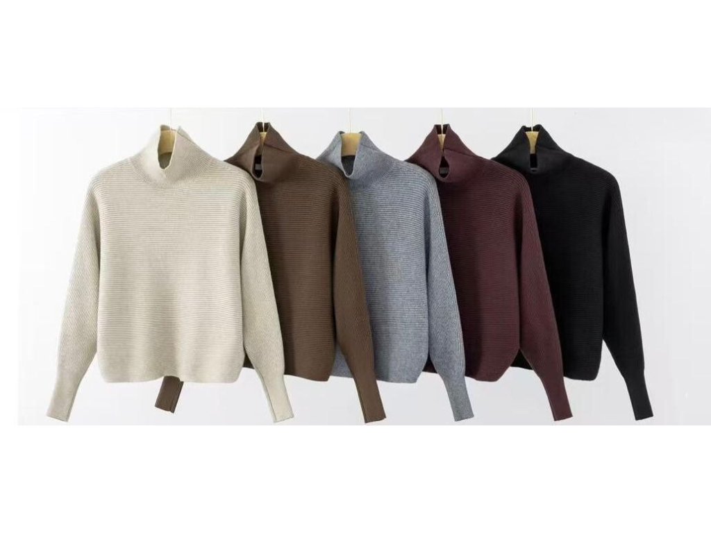 Trendy rolák z žebrovaného úpletu. Rolák je kratšího, volnějšího střihu s raglánovým rukávem.